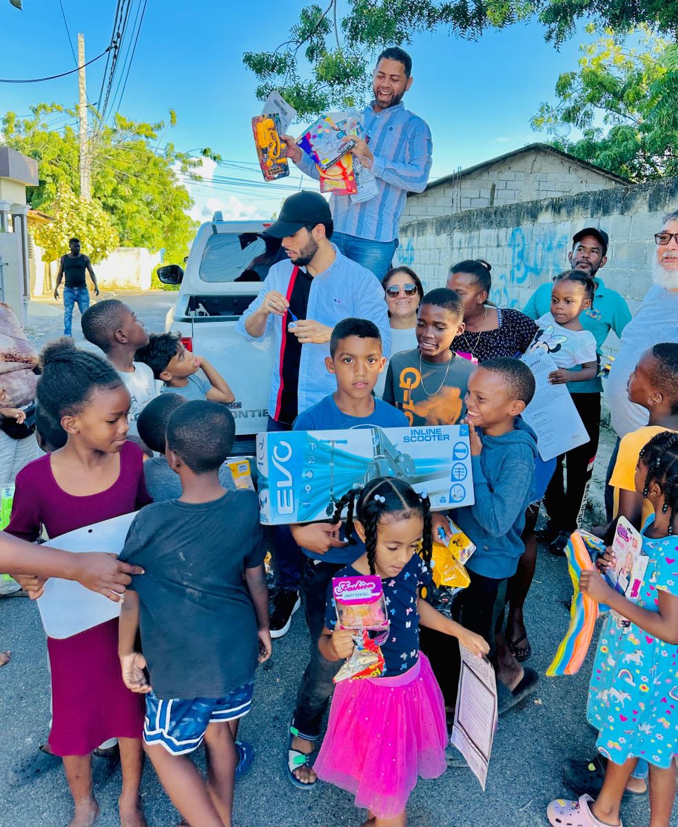 La Otra Banda.– En la tarde de este domingo, Alexander “El Hijo del Pueblo” llevó a cabo una emotiva jornada de entrega de juguetes, realizada con recursos personales, en diversos sectores del distrito municipal de La Otra Banda, llevando sonrisas, esperanza y momentos de felicidad a decenas de familias de la comunidad.